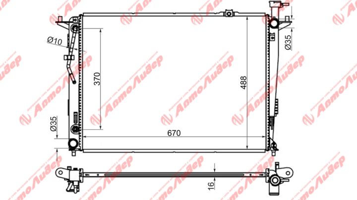 Радиатор охлаждения /AUTOLEADER для KIA Sorento Hyundai Santa Fe 2009-2012 2.4 3.5 /без крышки; HY-003-1216; KI000509 RC00311 253102B400