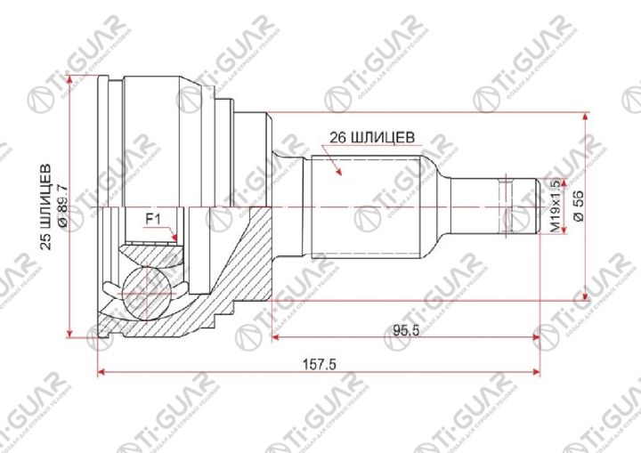 ШРУС наружный /передний левый /правый /TI-GUAR для Toyota Corona 1992-1996 Exiv Celica 171 183 3S-GE; 25*56*26; L=95.6mm; TG-9505; (TO-065A48 TOE065A TO005) 0110005 TO005A48