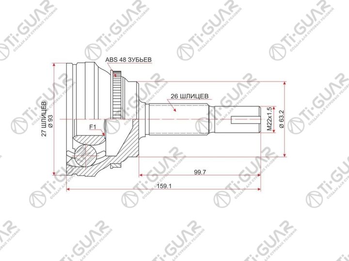 ШРУС наружный / правый /левый /TI-GUAR для Toyota Voxy Estima Harrier 2000- CU30; 27*63*26; TG-9561Z48; (TO-E072A TG-9599Z48 JCT0066A) 4341028030 CO7522A 0110061A48